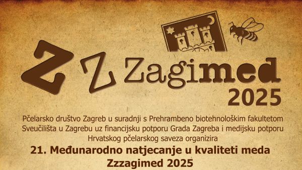 Dodjela priznanja 21. Međunarodnog ocjenjivanja meda Zzzagimed 2025 održati će se u subotu 29. studenog 2025 u 10:00 sati ispred prostorija Pčelarskog društva Zagreb u Našičkoj 16. u Zagrebu.